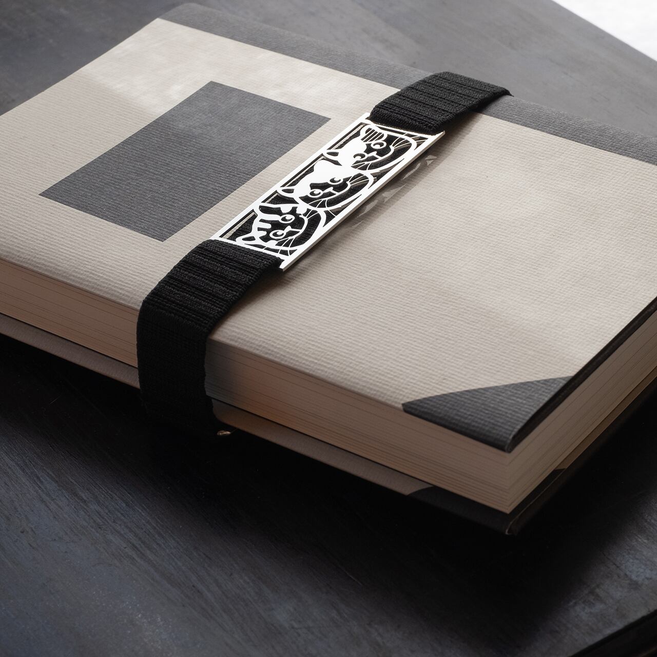 ご機嫌3兄弟が目配せしあうデザインのブックバンド。